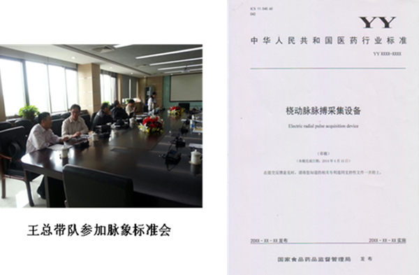 2014年4月,中華人民共和國醫(yī)藥行業(yè)中醫(yī)診斷行業(yè)標(biāo)準(zhǔn)會(huì)在天津醫(yī)療器械質(zhì)量監(jiān)督檢驗(yàn)中心召開,公司作為中醫(yī)診斷行業(yè)標(biāo)準(zhǔn)制定方、驗(yàn)證方,董事長王聯(lián)攜技術(shù)總監(jiān)、產(chǎn)品部經(jīng)理應(yīng)邀參加行業(yè)標(biāo)準(zhǔn)會(huì)議。
