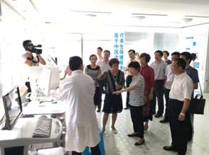 安徽省政協(xié)副主任肖超英到我公司考察工作,圖為參觀中醫(yī)綜合診斷設(shè)備
